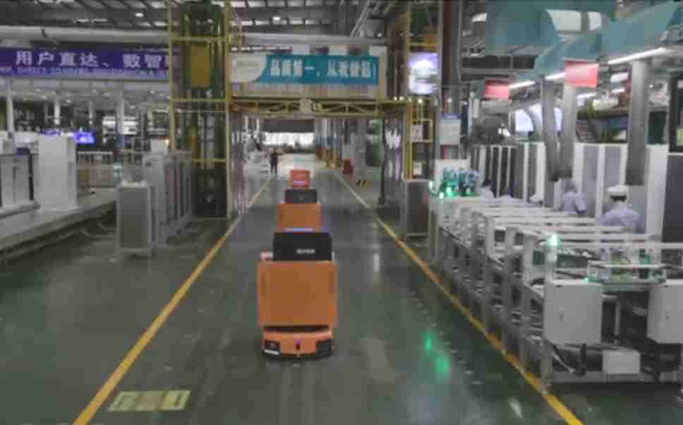 为车载冰箱物流配送打造的智能解决方案,,包含产中物流通过潜伏举升AMR搬运至线边,,,产后成品物流智能仓储,,,流程包含产中物流智能齐套入库,,,线边安灯叫料AMR智能配送至线边,,成品入库、、、、出库,,,,通过无人堆高车机器人,,,,智能仓储管理替代人工作业管理,,,实现更高存储、、、、更高效率、、、、更具柔性化的解决方案。。
